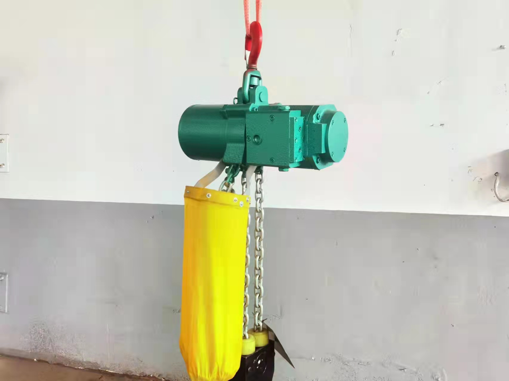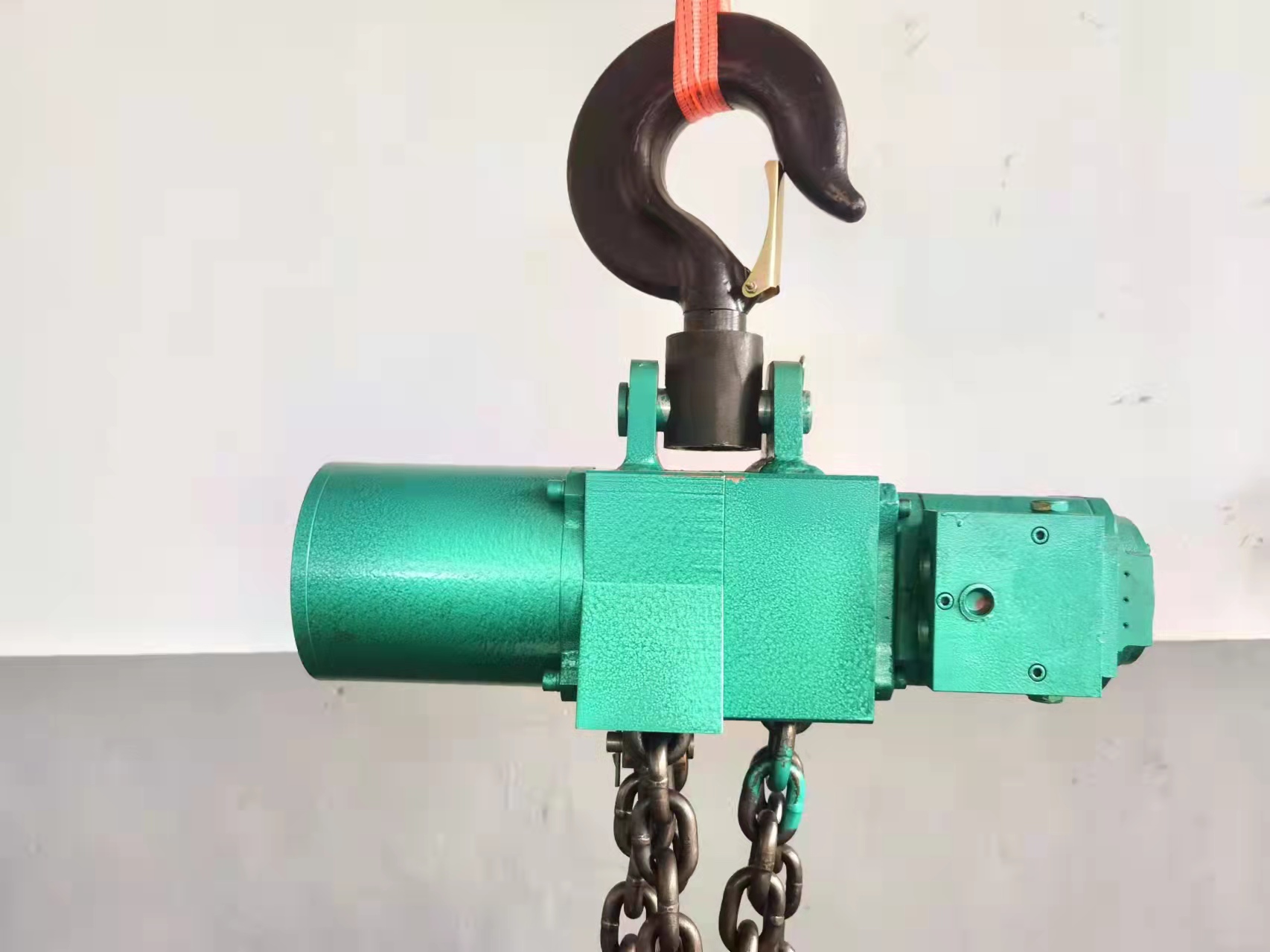 吊挂:主要由:上钩、吊挂体、链轮、链条、下钩等部分组成。依靠链轮的正反转动来完成上升和下降运动。