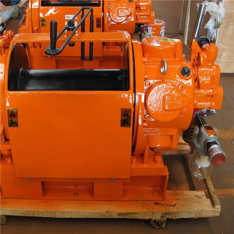 气动绞车,是一种以活塞式气动机为动力的气动绞车。该型绞车:主要是供油田钻井、金属矿、煤矿等采掘矿场、建筑工程等部门拖运,或提升重物之用。由于它具有体积小、重量轻、速度可调、易于搬运和快速安装等特点,因此,对于采掘矿场的井下作业更为适用。如在掘井、回采工作面的装载站上调度,拖运矿车和在井下的狭窄巷道中提升,牵引工具、器械等重物,特别适用于油田、地质钻井、矿山开采及易爆、易燃气体等场所。